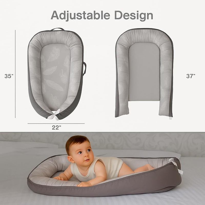 - ๐๐ผ๐๐ฏ๐น๐ฒ-๐ฆ๐ถ๐ฑ๐ฒ๐ฑ ๐๐ฒ๐๐ถ๐ด๐ป: Our baby nest features a double-sided design, with each side showcasing a unique color while maintaining the same high-quality, ultra-soft fabric for your babyโs comfort.