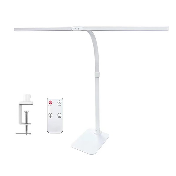 - 【Ultra Wide, Large and Bright】 This 24W LED desk lamp has a double head design that allows you to adjust the angle of the light bar. It can extend to 31.5 inches and fully illuminates the table. Suitable for multi-monitor workstation, home office, large desk, study, architect, computer, drawing, sewing, crafts, painting, reading, gaming, piano. Height up to 32.7 inches. The best LED desk lamp for working from home.