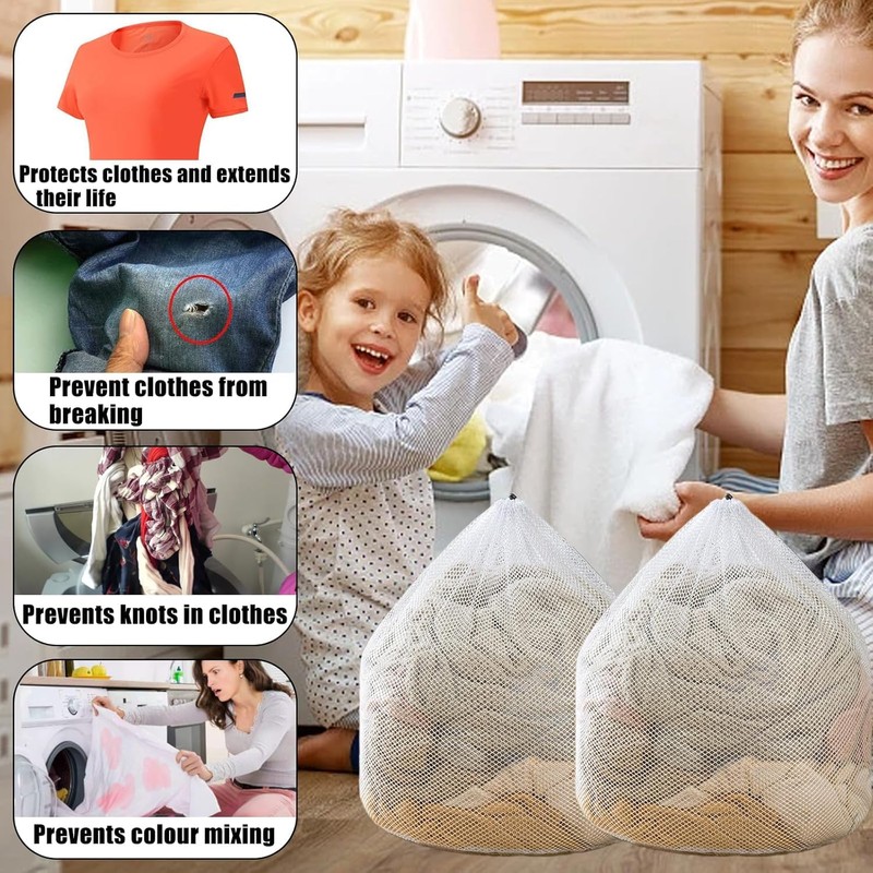 Machine Mesh Laundry Bags with Drawstring,2PcsLarge MeshLaundry Bag withDrawstring,Machine Washing Bag Mesh Bag with Drawstring,Mesh Laundry Bags Washing MachineBagwithDrawstringClosure (Large)