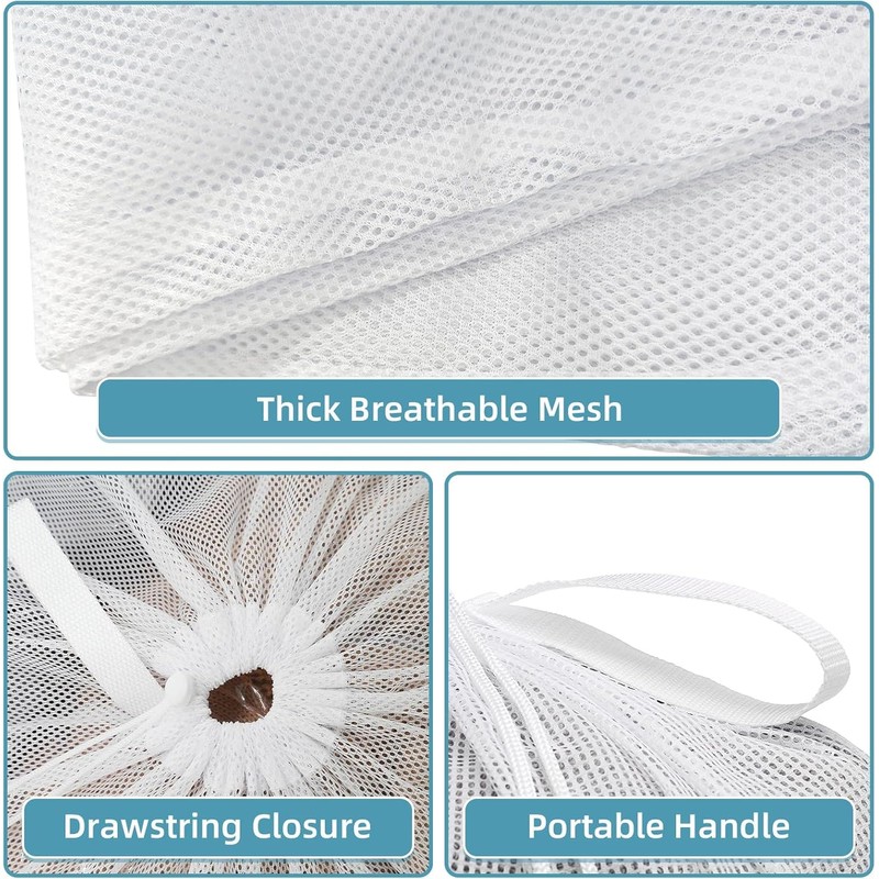 1. Breathable Mesh: These drawstring net bag adopt eco-friendly polyester material, breathable and keep odors away. Very fine mesh with small holes, easy to filter dust and dirty. Strengthen mesh is sturdy enough for long term use.