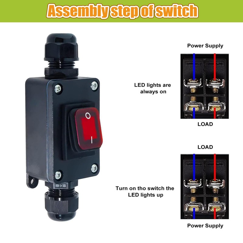 - Waterproof & Durable Design: Made of high quality flame retardant PC material, the rocker switch provides waterproof protection against moisture and dust, ideal for indoor and outdoor use. Suitable for industrial devices, on off switch in workshops or as a toggle switch 4 pin in electrical circuits.
