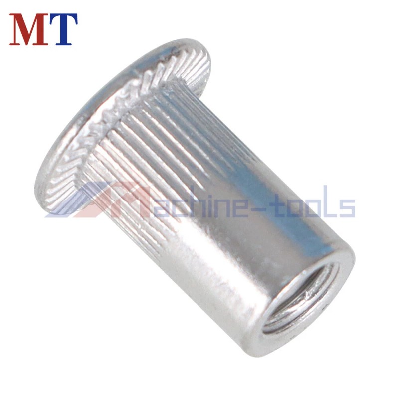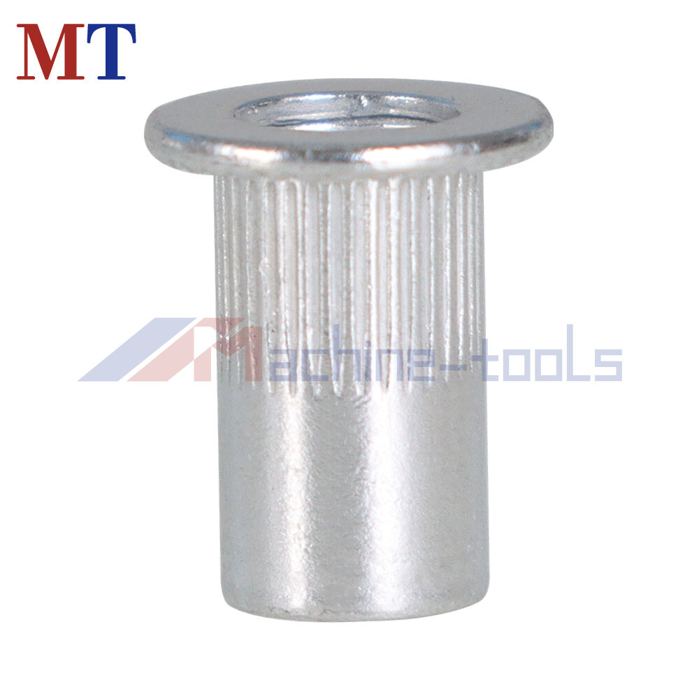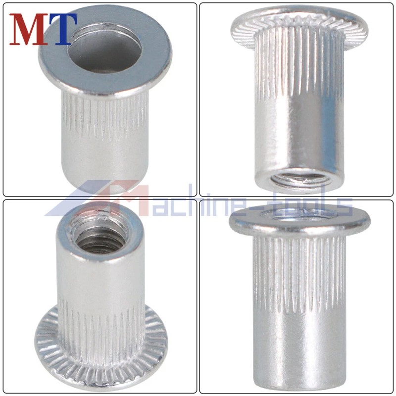 Specification: A Rivet Nut fastener is a tubular rivet with internal threads. It can be installed in seconds form one side of the work. The added benefit of not only being a dependable fastener, they are ready to use with clean threads available for screw attachments. Once installed, they are permanently attached to the mating material, allowing the associated nut to be removed in service without the risk of the fastener becoming dislodged. Also are used when an application has little or no access to the backside as they can be installed from the front side of the work piece. This Nutsert has a large flange to provide increased strength in punched and drilled holes. Flat head cap screws, knurled body for anti rotation and more durable. Can be installed in many different kinds of material including steel, plastic and fiberglass.
