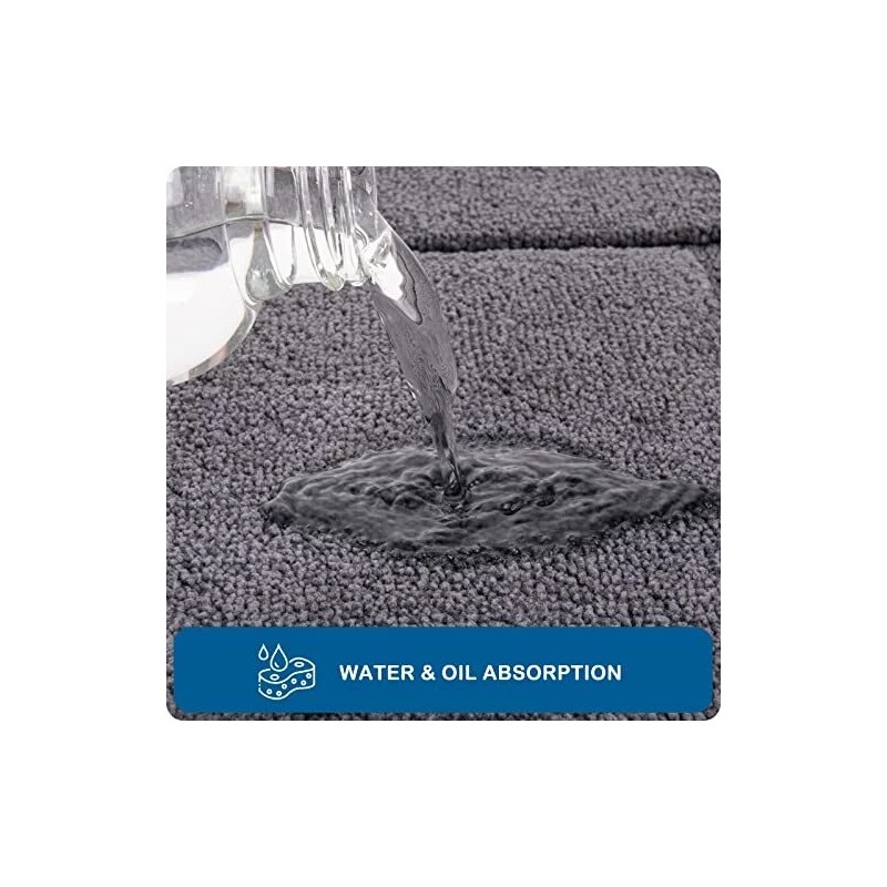 HIGHLY ABSORBENT: With countless polyester microfibers, our kitchen rugs efficiently absorb spilled oil and water. Cleaning up spills becomes a breeze with our washable kitchen rugs and mats, eliminating the need for extensive scrubbing of the entire floor.