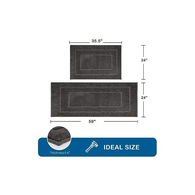 Machine Washable Kitchen Rug Set of 2, Non 24" x 35.5"+ 24" x 59" Grey