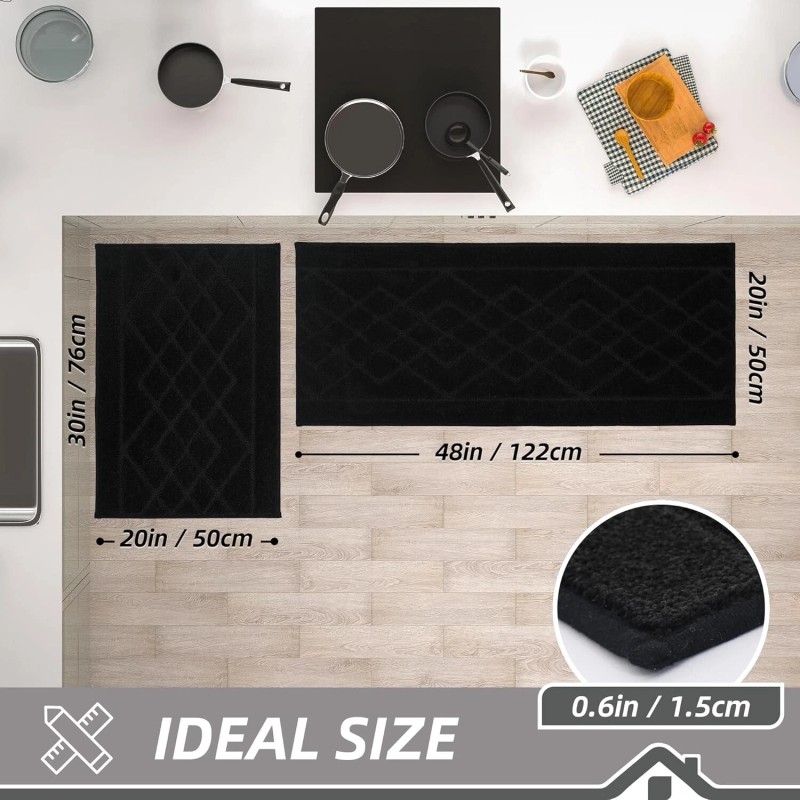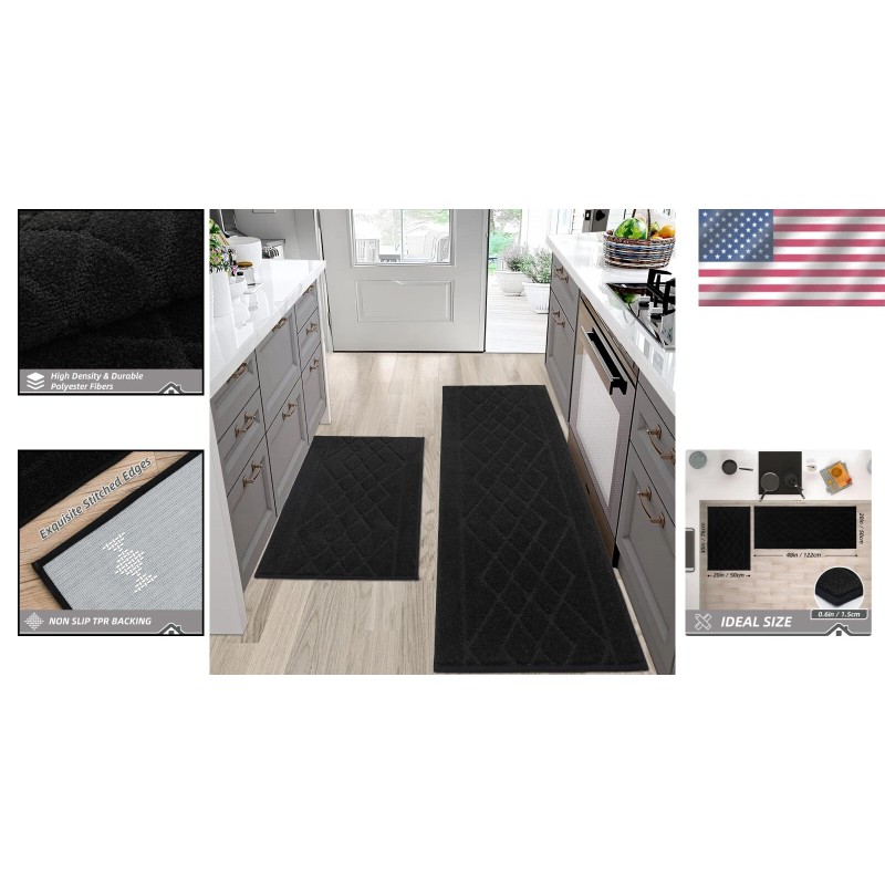 Don't let ordinary kitchen mats hold you back - elevate your kitchen decor and efficiency with our top-of-the-line kitchen rugs. Order your set today and experience the difference of quality craftsmanship!