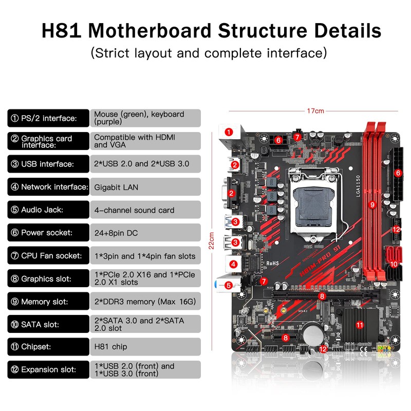 - MACHINIST H81 LGA 1150 Motherboard with 2x8GB 1600MHz DDR3 RAM Memory, Intel 4th Gen for Core i3,i5,i7/Xeon E3 V2/Pentium, Micro ATX, PCIe 2.0, NGFF M.2, Gigabit LAN