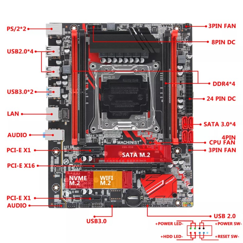 Machinist X99 Series Motherboard LGA 2011-3 Support RAM M.2 NVME XEON E5 V3 V4# - X99-K9