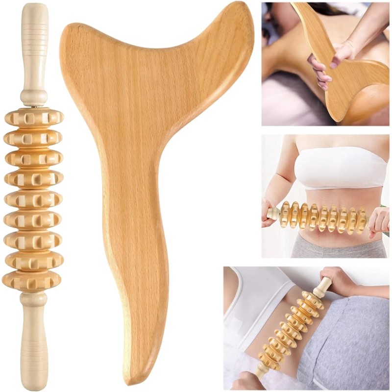 2 in 1 Wooden Lymphatic Drainage Tool Kit: Just a few minutes of using our wood massage tool daily for an effective lymphatic massage experience. This wood therapy massage tools kit can help your deep tissue massage, eliminate cellulite and discharge of residual toxins