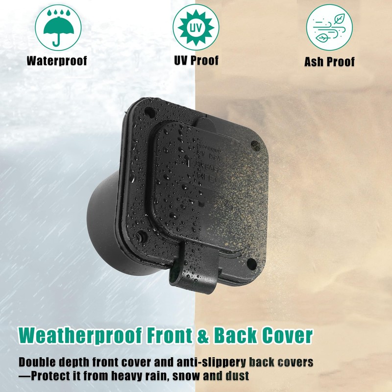 - [Double Sealing] Our 15 amp inlet comes with a doubled depth of the front cover to 0.5", with a non-smooth back cover, which brings more tightness for 15 amp power inlet, this shore power inlet 15 amp can withstand extreme weather conditions, making the RV or truck power inlet 15 amp windproof, waterproof, snowproof, and dustproof, ensure electricity security.