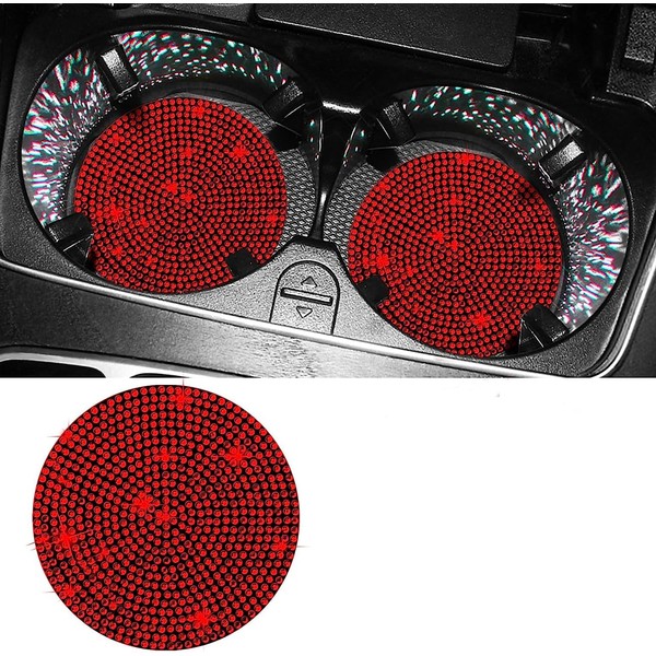 MACHSWON Car Cup Holder Coaster with Bling Red Crystal Rhinestone Sytle Anti-Slip Shockproof Coasters Vehicle Cup Holders Automotive Interior Accessories