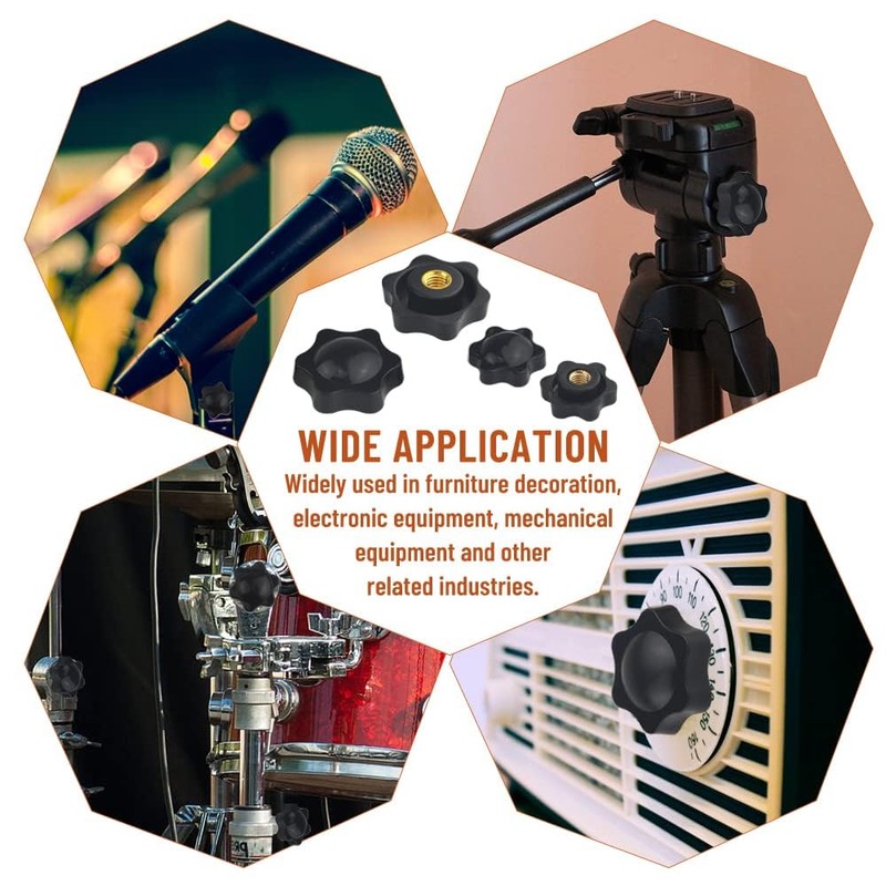 4. Thread clamping knob black plastic hand knob star shape knob handle for machine tool. Knob handles are made of high quality plastic for durability and long service life.