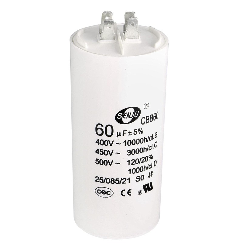- [Specification]: Rated Capacity: 60uF; Tolerance: ±5%; Rated Voltage: 450V AC; Body Size: 115x54mm ; Rated Frequency: 50/60Hz; Climatic Category: 25/085/21