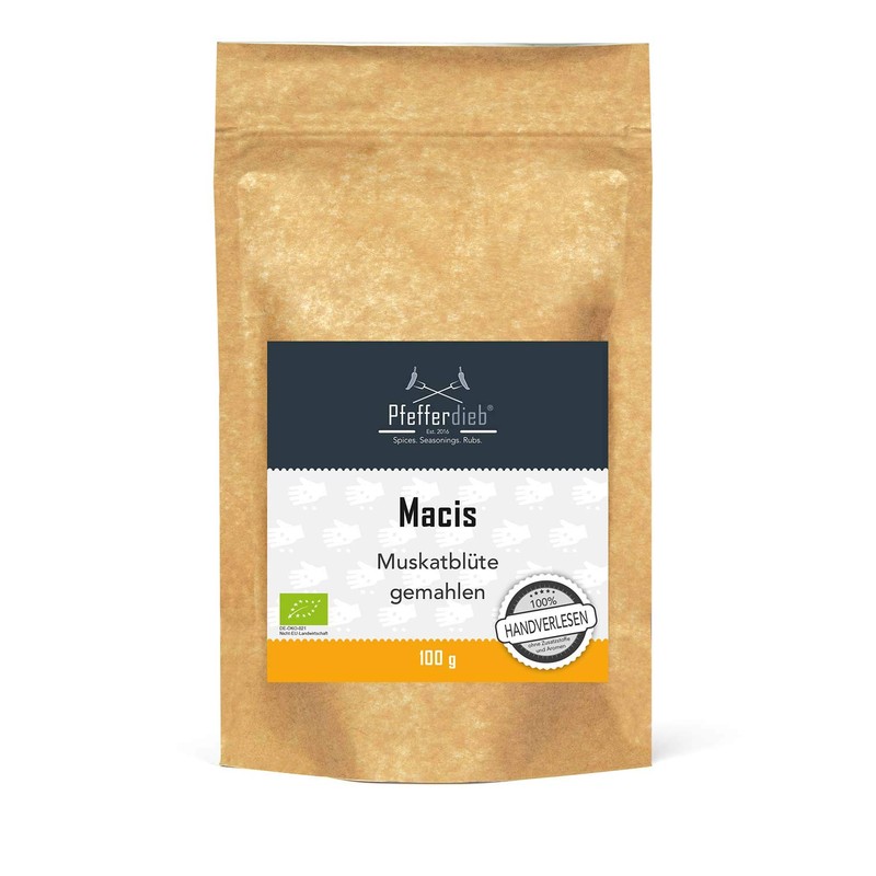- Laboratory tested purity: we regularly check the quality of our organic macis in an accredited laboratory for harmful substances or foreign substances. The filling is done by hand in the Pfefferdieb spice factory in Germany.