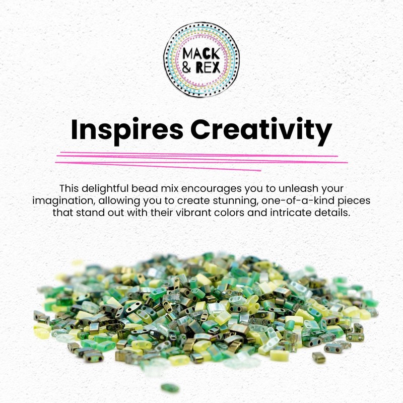 Mack and Rex Tila Bead Mixes (Meadow) – Half Tila Beads – Includes Sea Foam Green, Transparent Moss Picasso, Olive, Green Matte Rainbow, Two Golf Lime Green Shades, and Metallic Green
