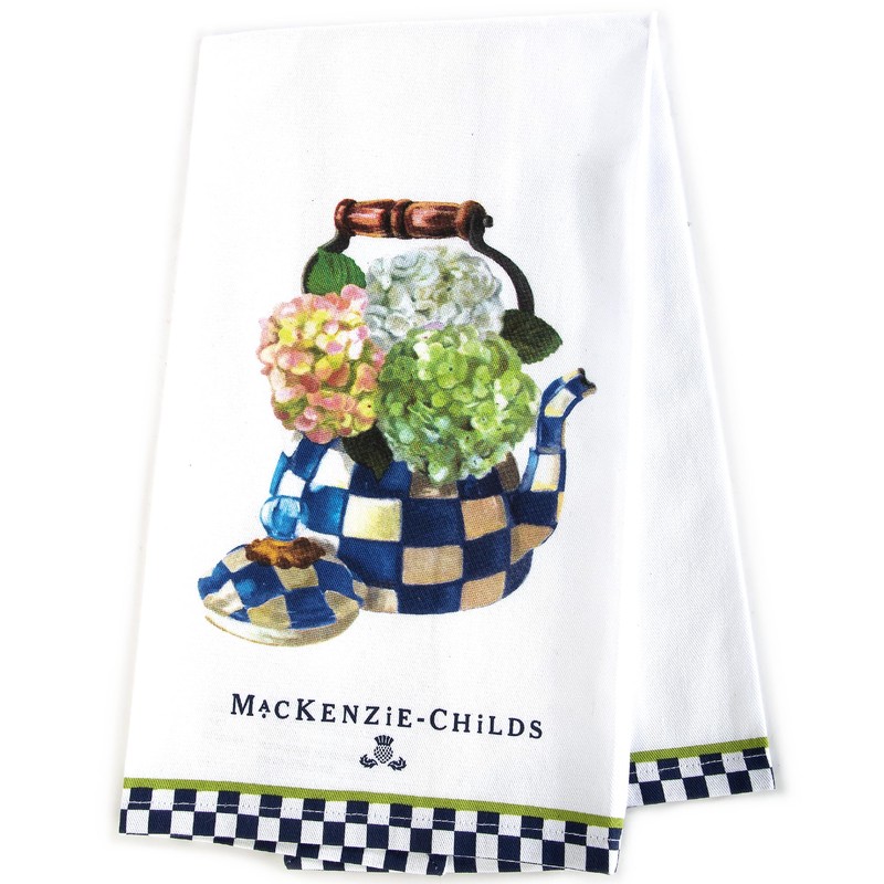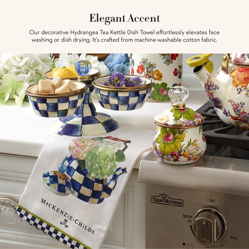 MACKENZIE-CHILDS Cotton Dish Towel, Cute Decorative Kitchen Dish Towel for Cleaning and Home Decor, Set of 1, Hydrangea Tea Kettle