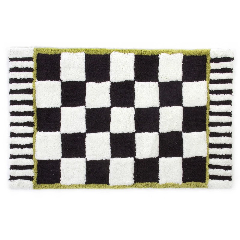 MACKENZIE-CHILDS Bath Rug, Bath Mat for Bathroom Use, Cotton Rug, Black-and-White Courtly Check