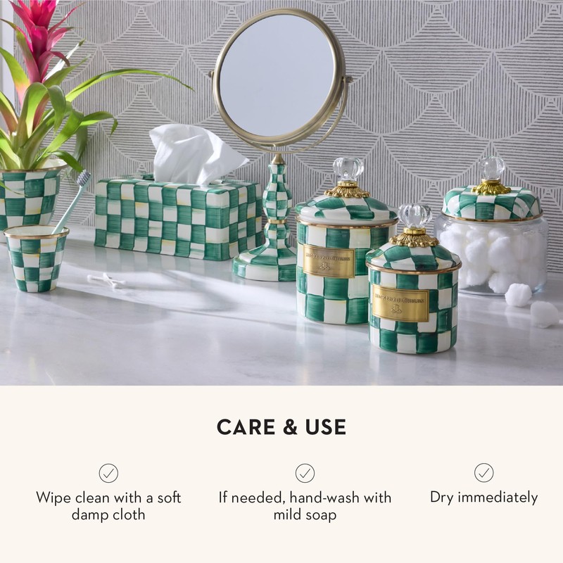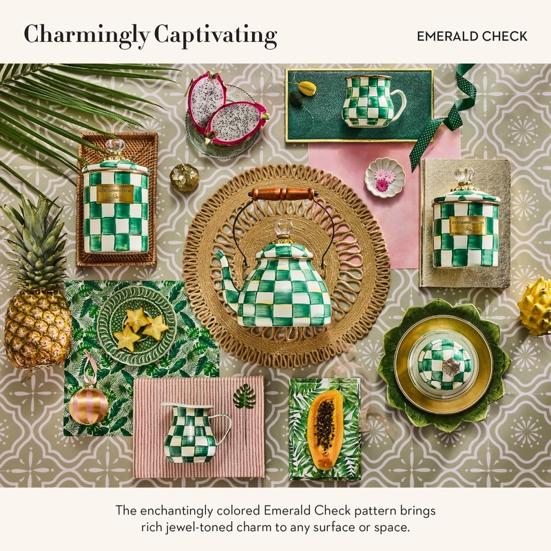 MACKENZIE-CHILDS Demi Enamel Canister, Kitchen Storage Container with Lid, Green-and-White Emerald Check