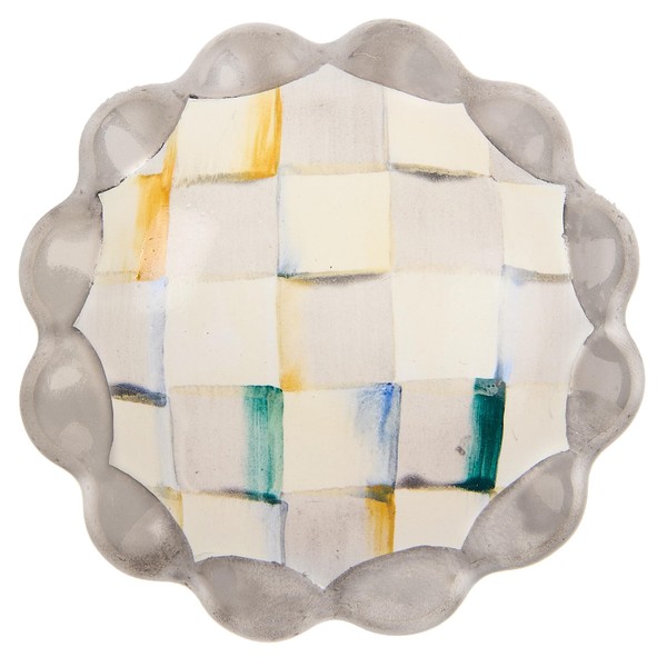MACKENZIE-CHILDS Round Knob, Decorative Drawer Pull Knob, Gray-and-White Sterling Check