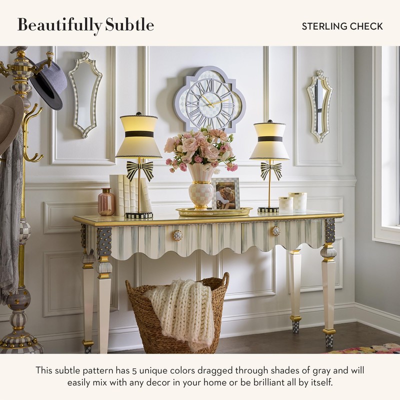 MACKENZIE-CHILDS Wall Clock, Decorative Enamel Clock for Kitchen and Living Room, Gray-and-White Sterling Check