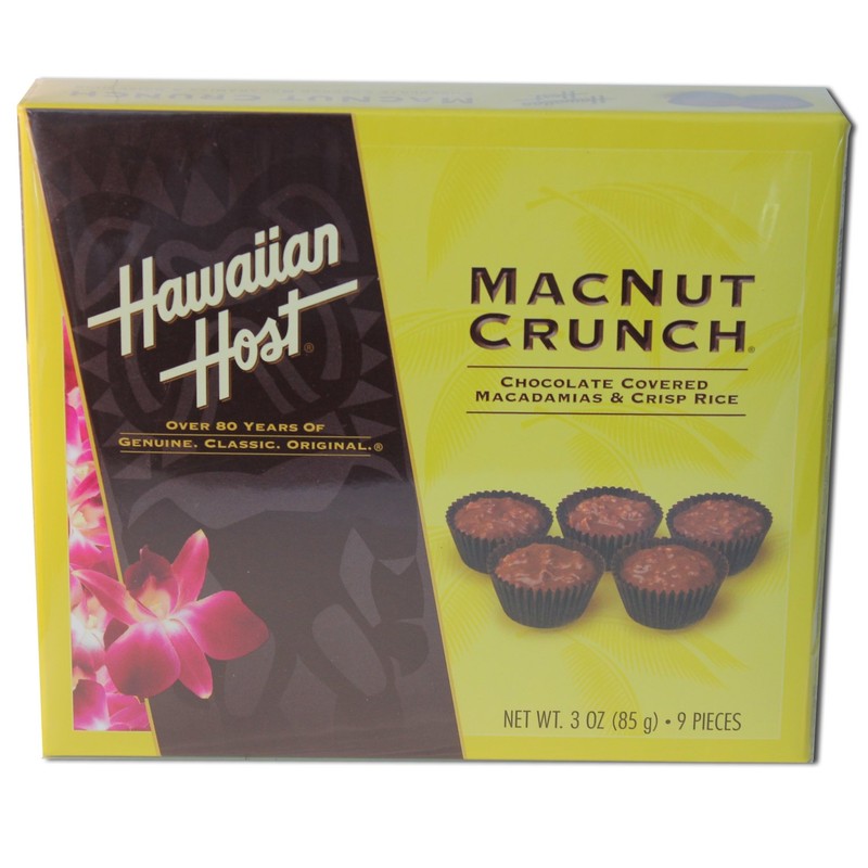 - Hawaiian Host MacNut Crunch Chocolate Covered Macadamias & Crisp Rice. It is a perfect box to indulge your sweet tooth!