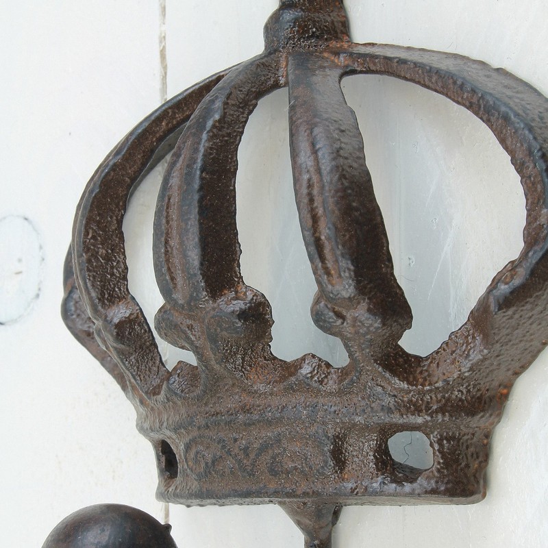 Macosa SA80248 Wall Hook Crown Cast Iron Country House Style Antique Rust-Coloured Varnished Nostalgic Coat Hook Towel Hook Wall Decoration