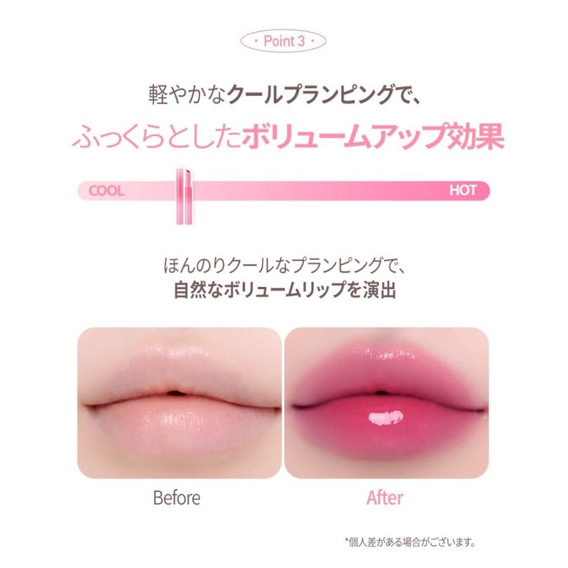 - ふっくらとしたボリュームアップ効果: 軽やかなクールプランピング効果により、唇に自然なボリュームを与え、ふっくらとした印象に仕上げます。