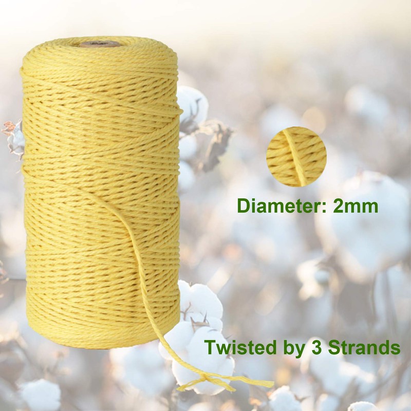 Macrame Cord, ZOUTOG 2mm x 328 yd (About 300m) 100% Natural Cotton Soft Unstained Rope for Handmade Plant Hanger Wall Hanging Craft Making, Yellow