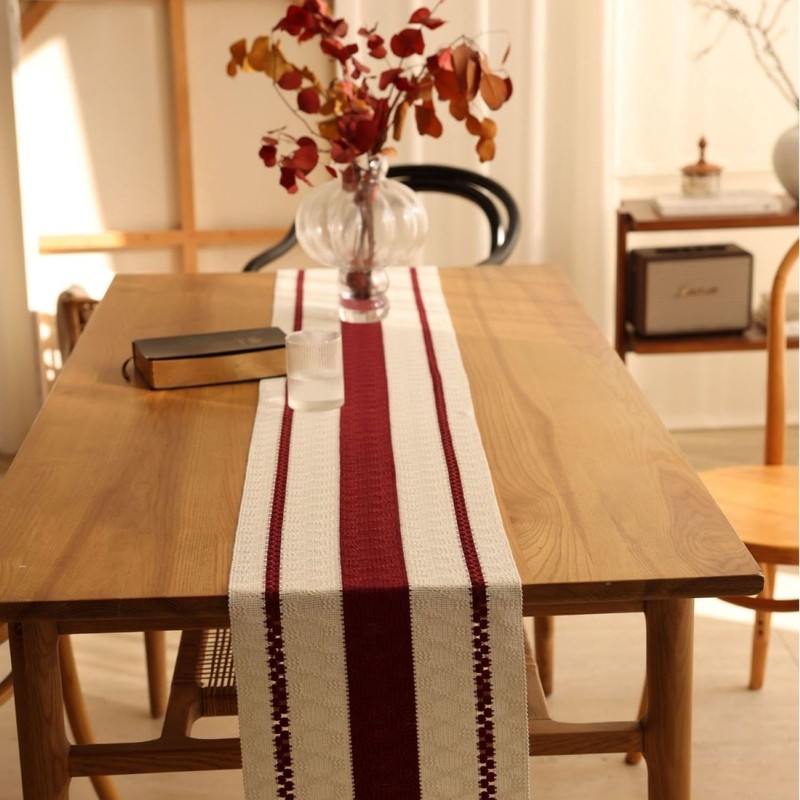 - 【Suitable for More Occasions】this French striped table runner perfectly decorate to your dining table, wedding table, coffee table, tea table, book desk, storage table, kitchen island, dresser, piano, bed, bedding blankets decor, TV stand, studio, etc.It is suitable for daily use, and can also be decorated for special holidays, Christmas, weddings, baby showers, parties and any other special occasions to add to the atmosphere.