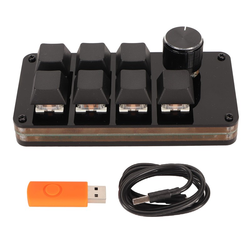 1、[7 Keys 1 Knob Design] Mini keyboard with unique 7 keys 1 knob design allows to perform more complex operations, operate more freely. Easily adjust the volume, screen brightness, etc, with the knob. 2、[Customized Macro Programming] This keyboard supports customized macro programming, which allows you to bind frequently used operations or specific commands to keys, enabling you to perform multi step operations with a single key to improve your work or gaming efficiency. 3、[Hot Swappable] Mini 7 key keypad utilizes hot swappable technology, allowing you to replace keycaps or shafts at any time. Simply disassemble the shaft and replace it with a suitable mechanical shaft to quickly adapt to various scenarios. 4、[Blue Switch] Adopting blue switch mechanical keyboard with distinctive touch, fast feedback and durability. It specializes in clicking and quick combo operations in games, providing stronger competitive gaming performance. 5、[Key Line Separation] The macro programming keyboard is designed with key line separation, which allows you to flexibly arrange the keyboard wiring to reduce cable bunching and better organize your desktop.