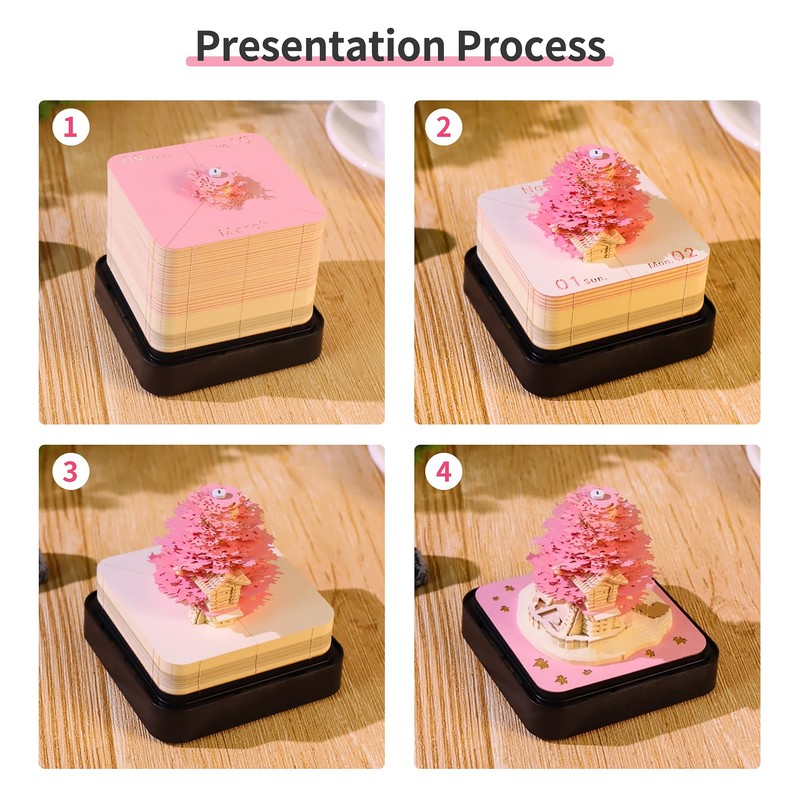 MACTANO 3D Art Calendar Memo Pad 2026, Creative Time Piece Calendar Sakura Tree Rip Away Paper Carving Sticky DIY Note Pink