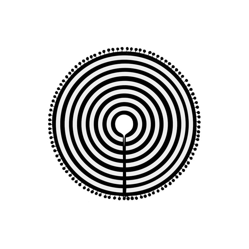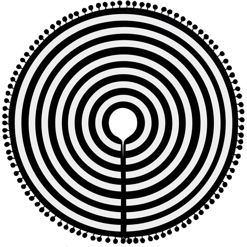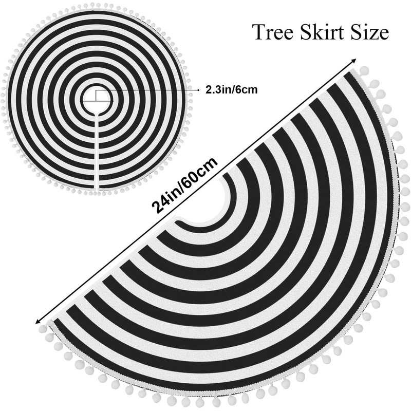 MACTING Christmas Tree Skirt, 24 Inches Black and White Stripes Tree Mat with Small Pom Poms Edge for Xmas Tree Christmas Decoration