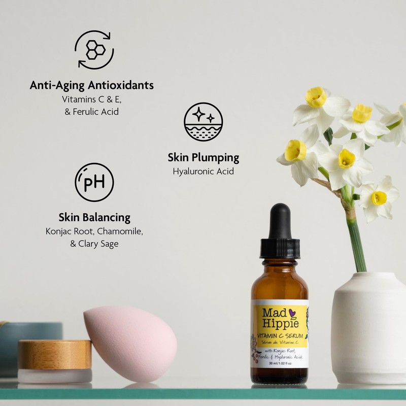 - HYDRATING SERUM FOR FACE: Mad Hippie Vitamin C serum with skin-plumping hyaluronic acid is formulated with Vitamin E and Ferulic Acid for a compounding antioxidant effect.