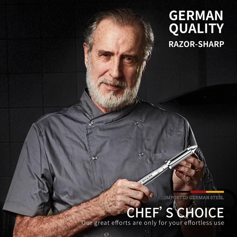 - ERGONOMIC COMFORT HANDLE PEELER: This peeler for kitchen is designed with a non-slip handle that ensures a safe and comfortable grip for all hand sizes, making it ideal for both left and right-handed users. Perfect for peeling a variety of fruits, vegetables, hard cheeses and more, this safe peeler takes the strain off of your hands and is especially beneficial for people with arthritis or weakened grip strengths