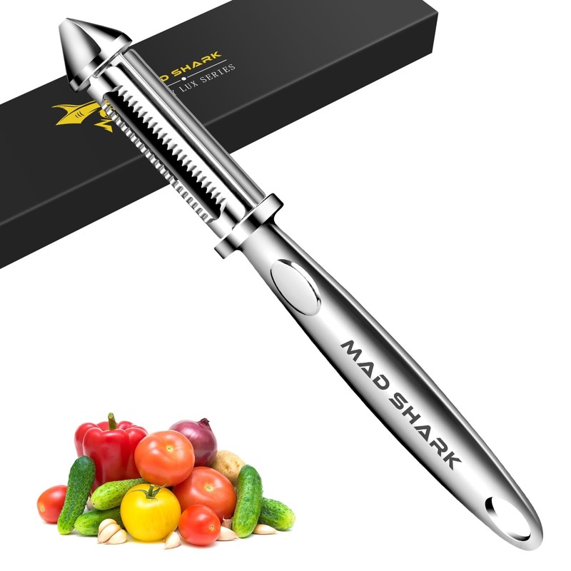 MAD SHARK Ultra Sharp Peeler,Flat/Serrated Blade 2 in 1–10 Years No-Rust,I-Shaped Stainless Steel Peelers,Vegetable Peeler with Ergonomic Non-Slip Handle,Potato Peelers for Kitchen