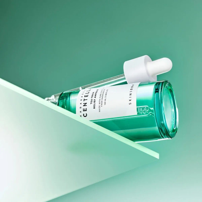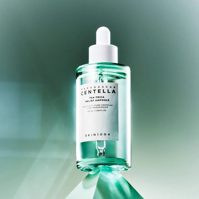 La SKIN1004 Madagascar Centella Tea-trica Relief Ampoule se utiliza de día y de noche después de la limpieza y la tonificación.