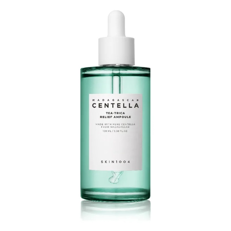 El SKIN1004 Madagascar Centella Tea-trica Relief Ampoule es un potente sérum facial de 100ml diseñado específicamente para el cuidado de la piel con tendencia al acné, brotes y sensibilidades. Formulado con el exclusivo complejo Tea-trica de SKIN1004, que combina las propiedades calmantes de la Centella Asiática de Madagascar con la eficacia purificante y antiinflamatoria de la Tea Tree (Árbol del Té), este sérum es un aliado fundamental para calmar la irritación, controlar el sebo y prevenir futuras imperfecciones. Es apto para todo tipo de piel, pero es especialmente beneficioso para pieles grasas, mixtas, con tendencia al acné y sensibles.