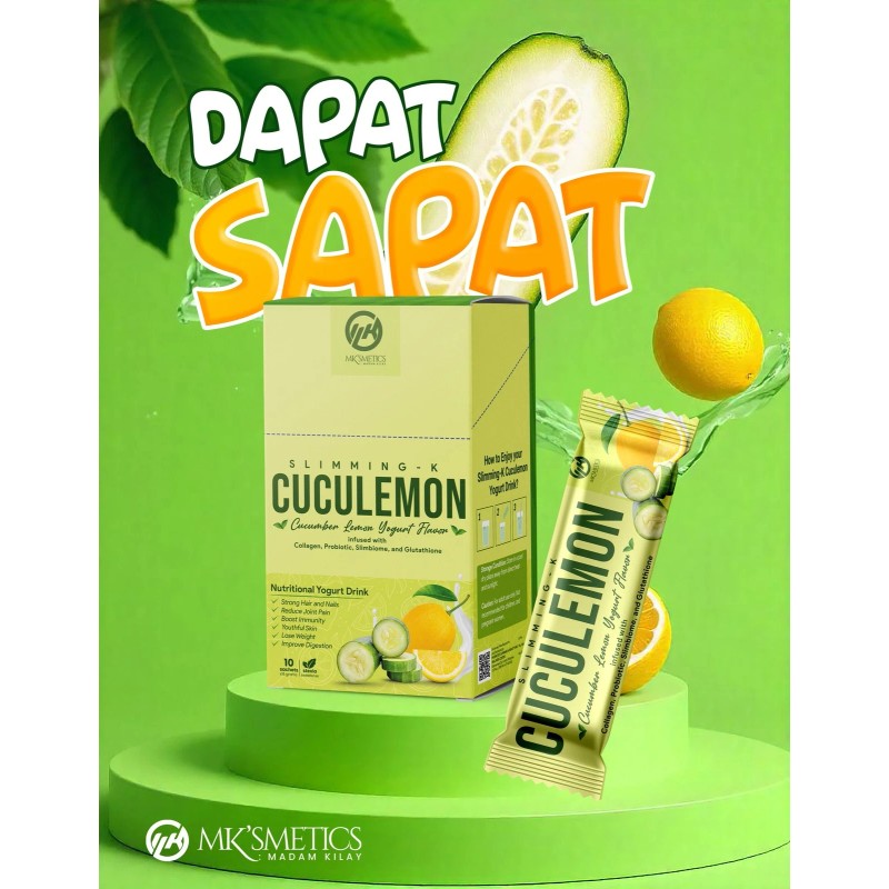 Elevate your wellness routine with Madam Kilay's Cuculemon Yogurt Probiotic + Collagen Milk Juice Mix. This delightful blend combines the refreshing flavors of cucumber and lemon with the nourishing benefits of yogurt, probiotics, and collagen, all packed into convenient sachets for easy enjoyment on-the-go.