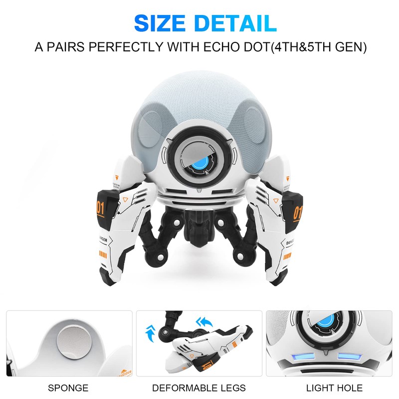 - 【Technical Robot Shape】This Madatop Robot-shaped Echo Dot Stand can be perfectly matched with Echo Dot (4th/5th generation), specially designed for Echo Dot 4/5th Generation, Echo Dot 4/5th Generation with clock, Echo Dot 4/5th Generation Kids Edition, and Apple Homepod Mini design. Not suitable for Echo (4th/5th generation) due to different size. The cool shape can be used in the office, home, garden, etc., making your desktop unique.