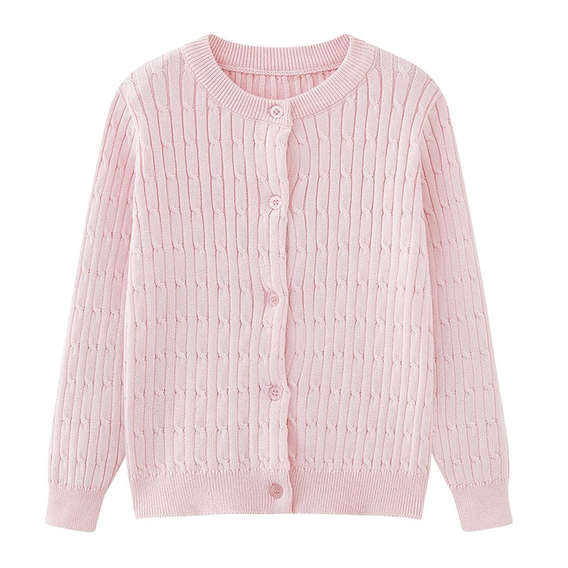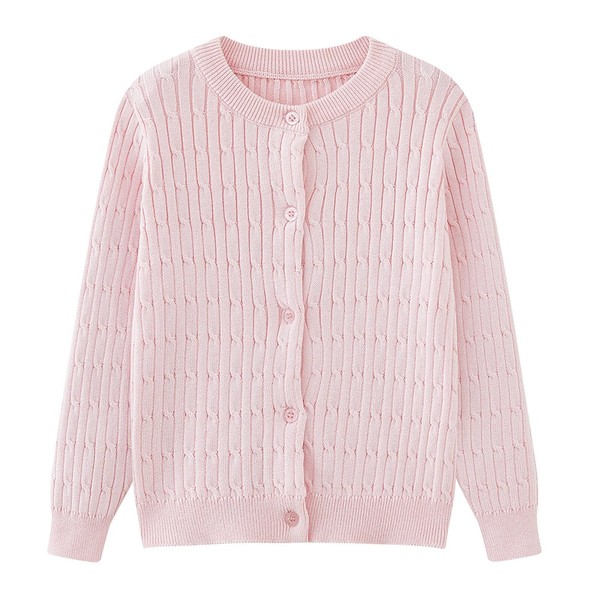 Mädchen-Strickjacke, Langarm, Rundhalsausschnitt, leicht, bequem, Pullover, Jacke, Kinderkleidung, Herbst und Winter, Rosa, 9-10 Jahre