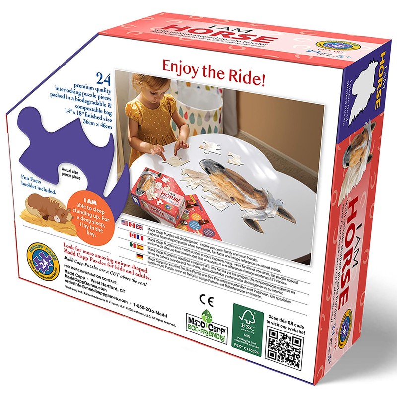 - AWARD-WINNING & AWE-INSPIRING, Madd Capp puzzles are big and beautiful and way more fun than your average 24-piece jigsaw! I AM HORSE has an animal-shaped border (14" x 18" assembled).