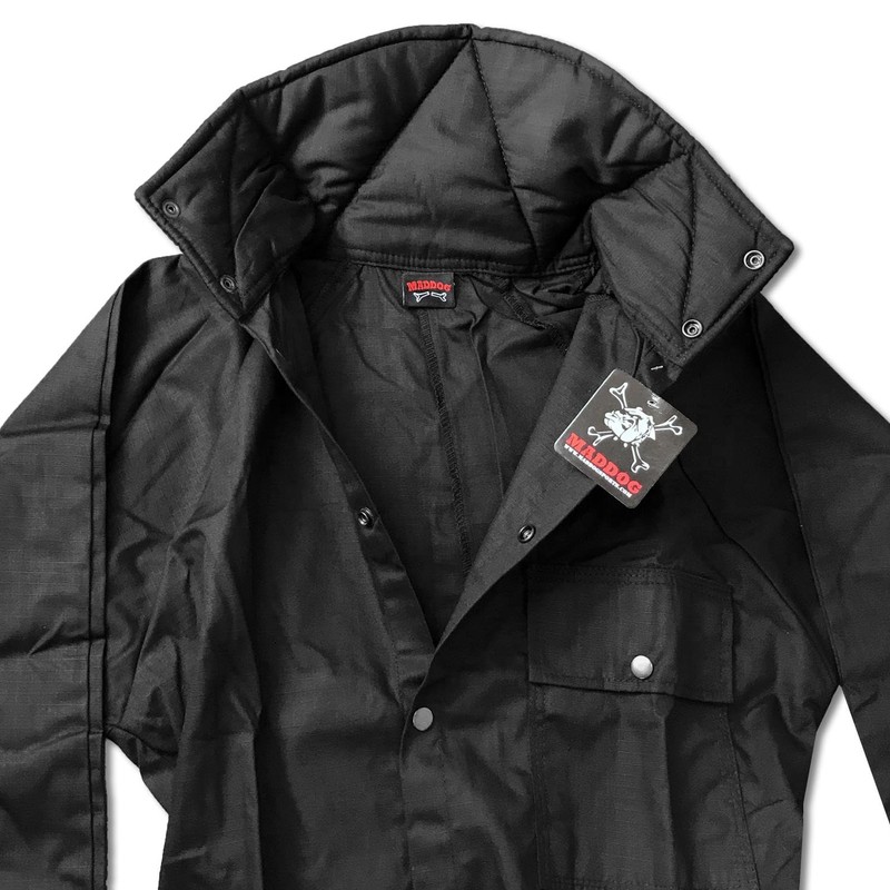 - BUILT FOR PAINTBALL, AIRSOFT, SCENARIO, DIRTY WORK, ETC. Maddog Coveralls are a One-Piece, Machine Washable, Step-In Coverall Jumpsuit with Button Closure, Elastic Wrist Cuffs, Padded Collar, Heavy Duty Rip Stop Material, Reinforced Knees, and Pass-Through Pockets.