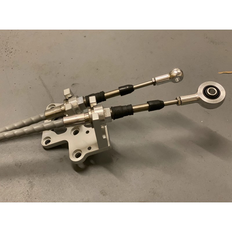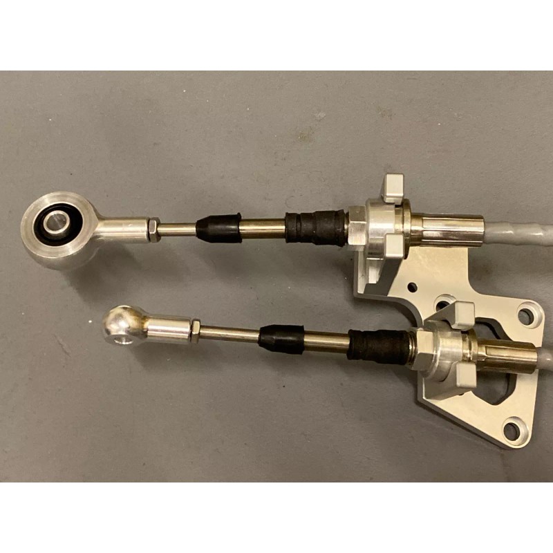 - Gear selector with a billet rod end, with added a spherical Delrin insert to allow proper movement.