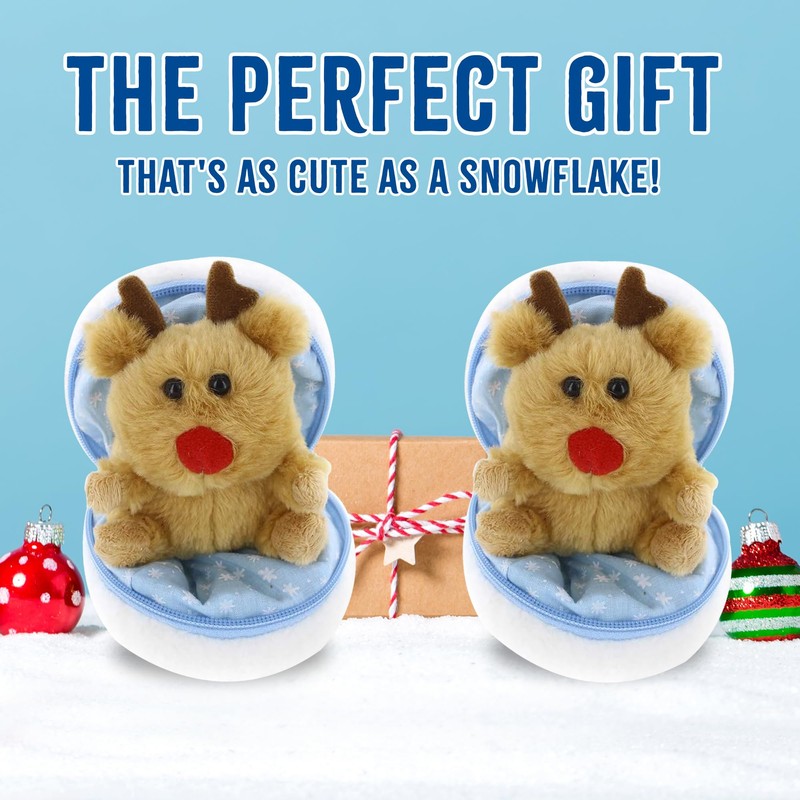 Made By Aliens Snowball Stuffed Surprise Zip Up Stuffed Animal – 6 inch Cute & Soft Plush Animal Toy – Perfect for Friends and Family All Ages Christmas Thanksgiving (Reindeer)