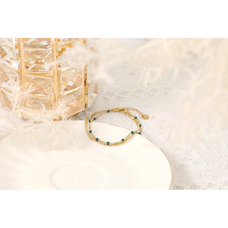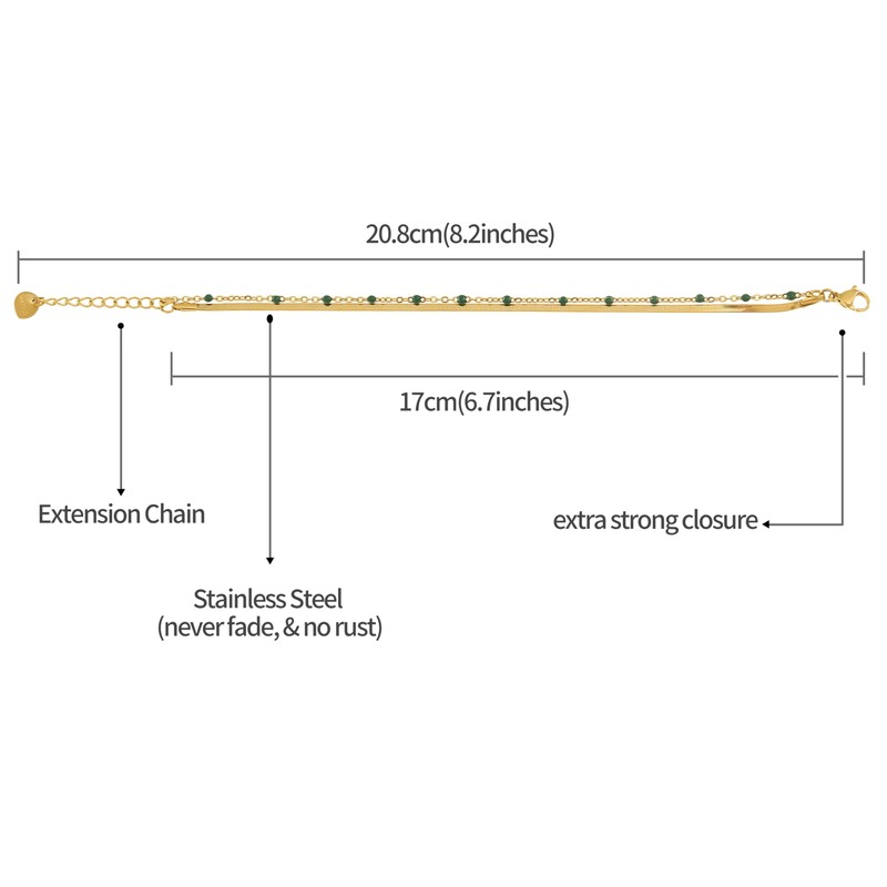 Double row gold bracelet set made of stainless steel with gold finish and colourful beads, 20 cm length, waterproof.