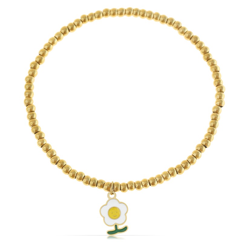 Made by Nami Golden Pearl Bracelet Women's Elastic Friendship Bracelets with Charms Made of Surgical Stainless Steel Hypoallergenic Waterproof Jewellery Gold, Stainless Steel, No Gemstone