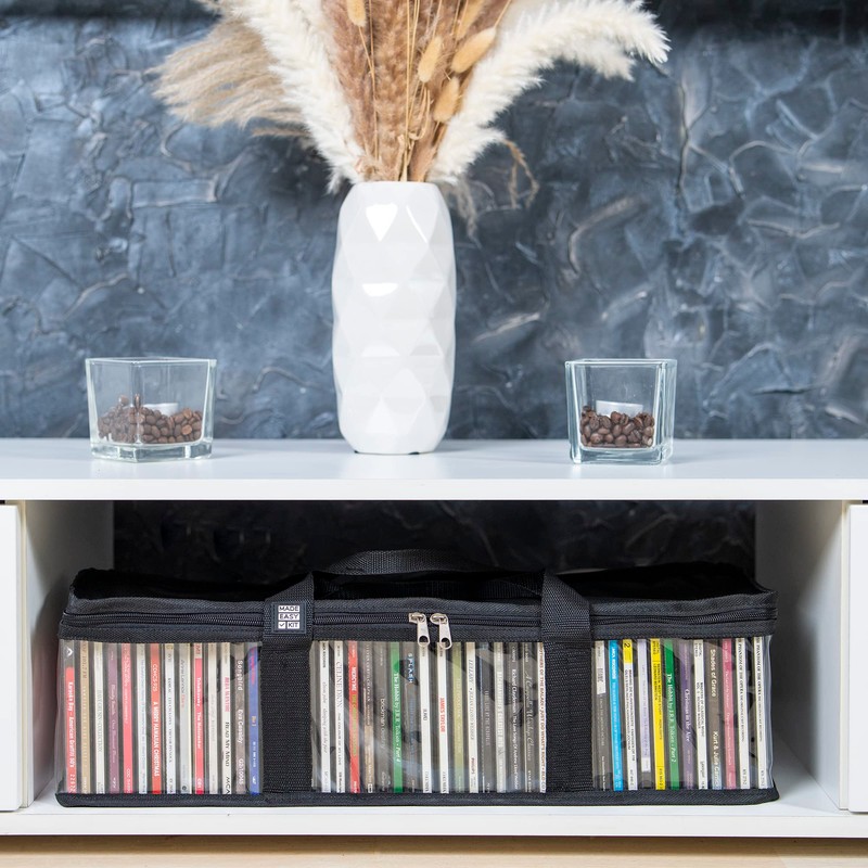CD Storage Case - Clear See Though PVC Organizer With Triple-Stitched Handles and Dividers - Stackable, Space-Saving, Fits 50 CDs. A Made Easy Kit product.