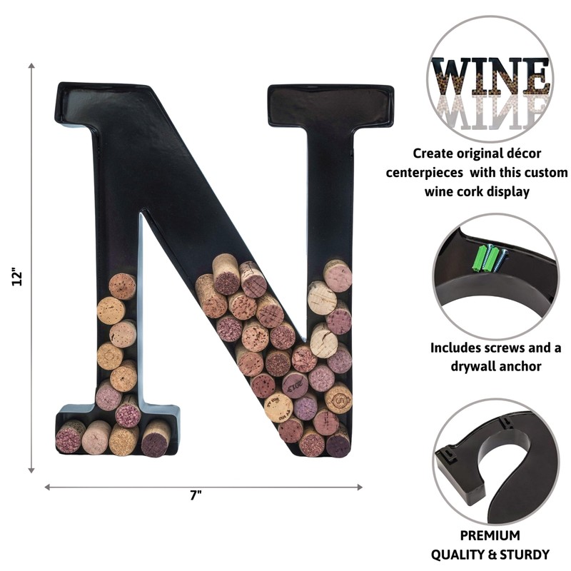 • EASY INSTALLATION: This personalized letter shaped decorative monogram holder for corks includes screws and a drywall anchor, being easy to install without the hassle of professional help. Large letter measures 12” in height, 1.75” depth, and approximately 10”