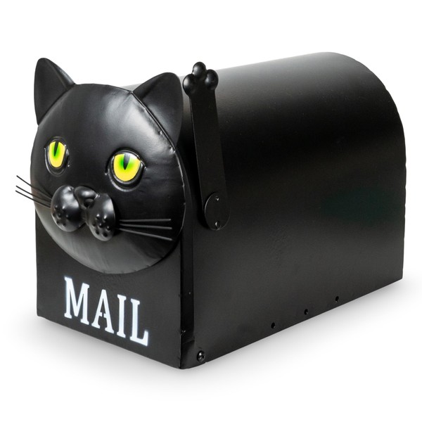 Made Easy Kit Metal Mailbox Animal Design - Fast Straight Forward Post Mounting Bracket Install - Durable All Weather Rust Resistant - Letters, Mail, Small Packages (Standard, Cat Black)