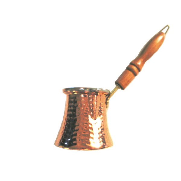 (Made in Turkey) Copper Ibric Jezbe (Turkish Coffee) Wooden Handle for 3 Coffee