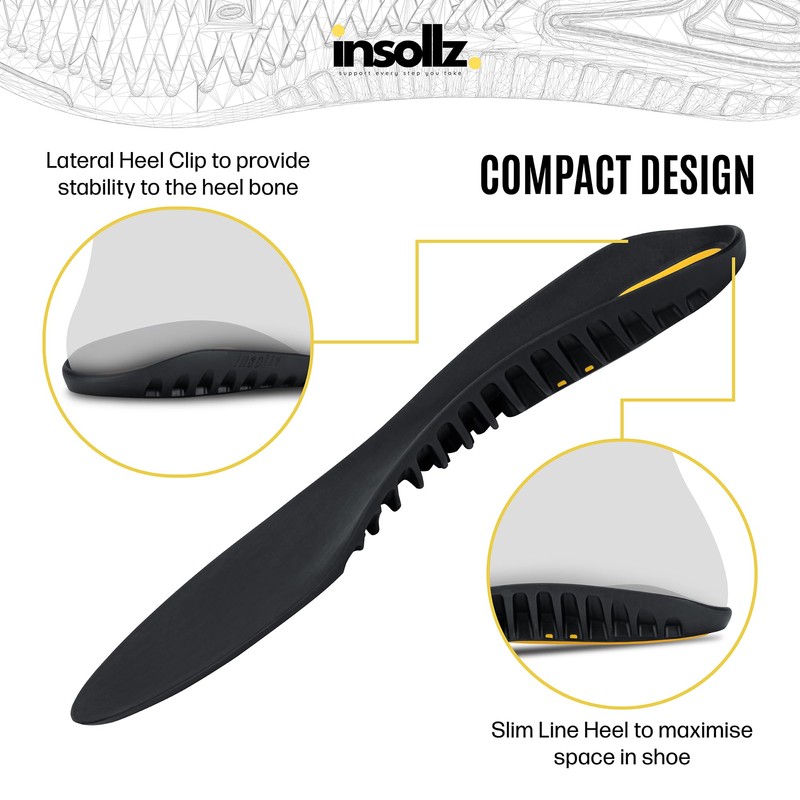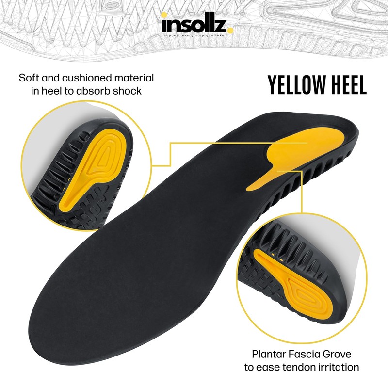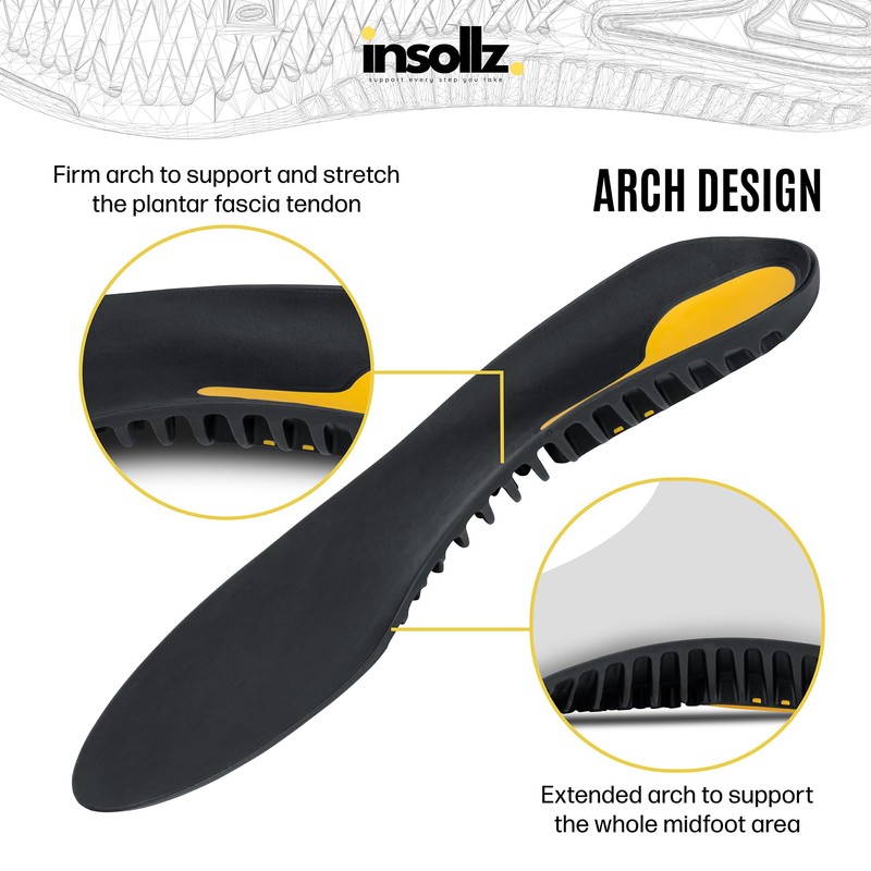 - Experience the unique Insollz dynamic support system. Our insoles for Plantar Fasciitis support the medial arch and cushion the heel. A treatment to ease plantar fascia strain providing relief from pain. Ideal running insoles for both men and women.